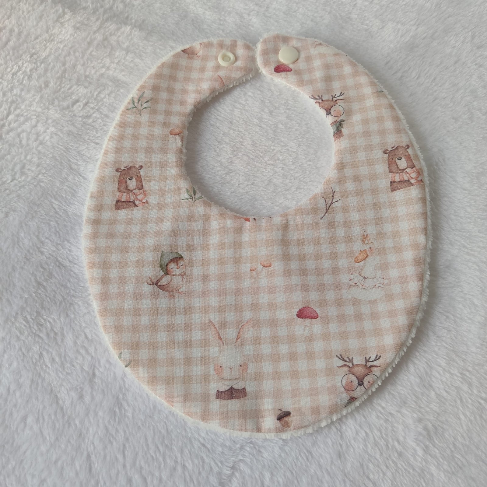 Babero Vichy Animalitos del Bosque con rizo de bambú (De 0 a 6 meses.)