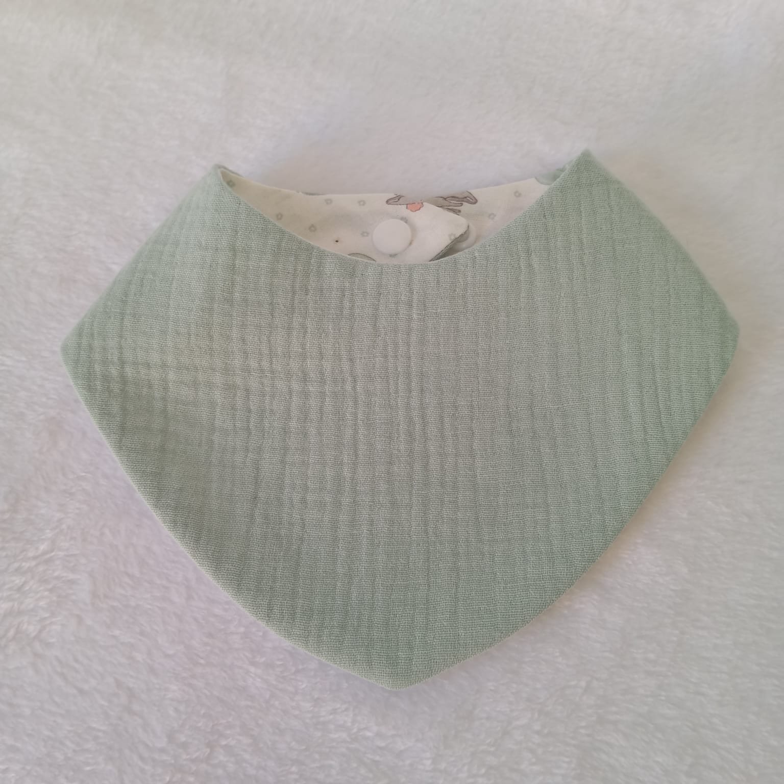 Fresca y moderna, esta bandana con estampado de globos en tonos menta está pensada para acompañar a tu bebé en cada momento con suavidad y protección.