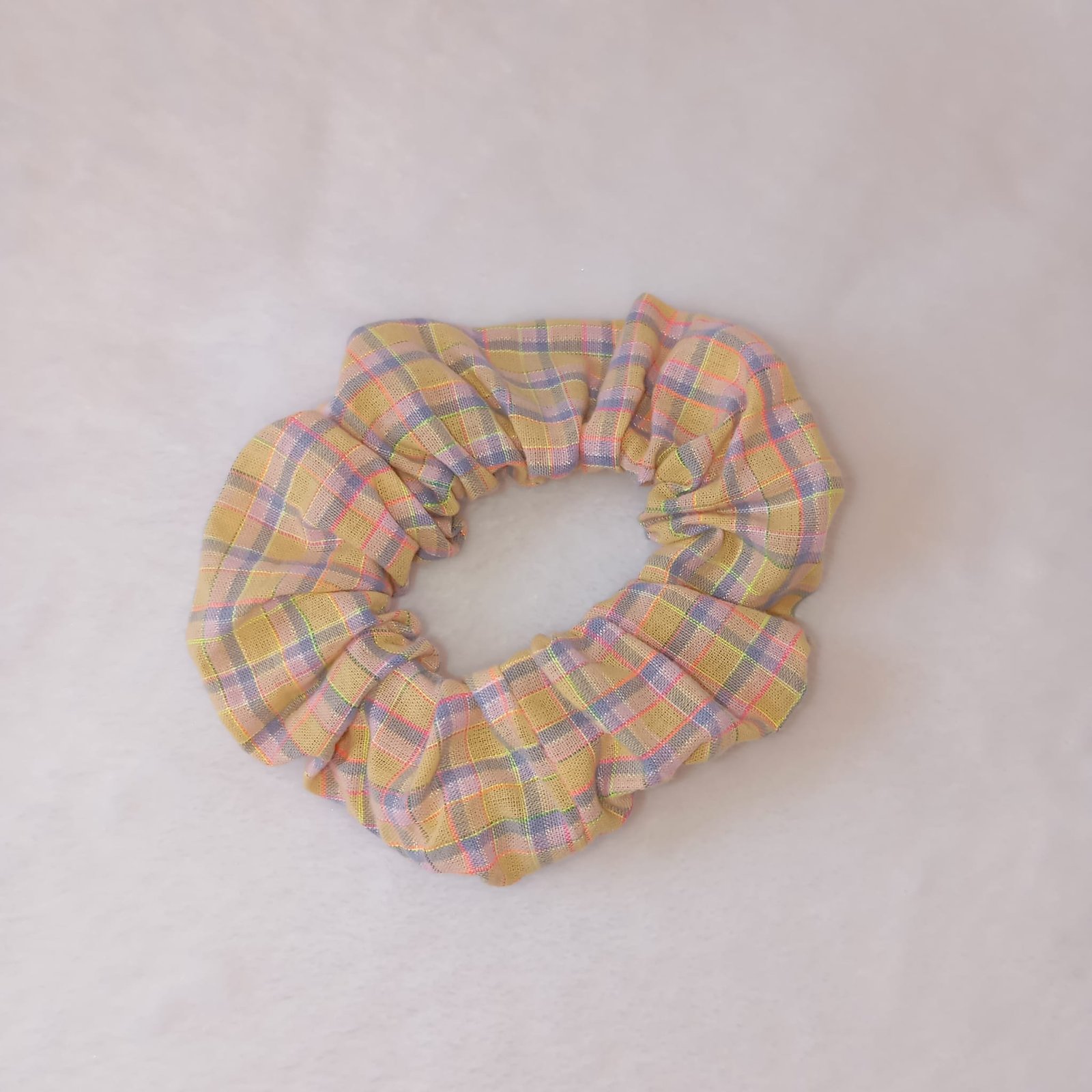 Estampado a cuadros en tonos pastel (amarillo, rosa y lila con toques neón).