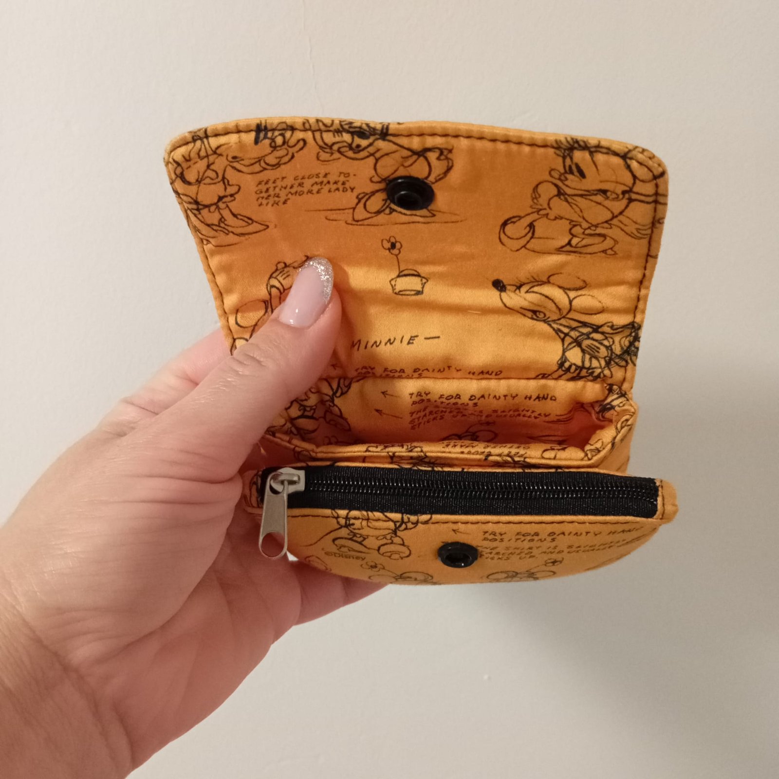 Original, cómodo y con un toque nostálgico encantador, el monedero doble Minnie Mostaza es un básico práctico con mucha personalidad.