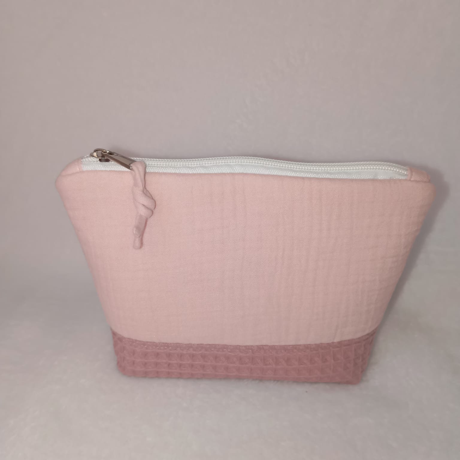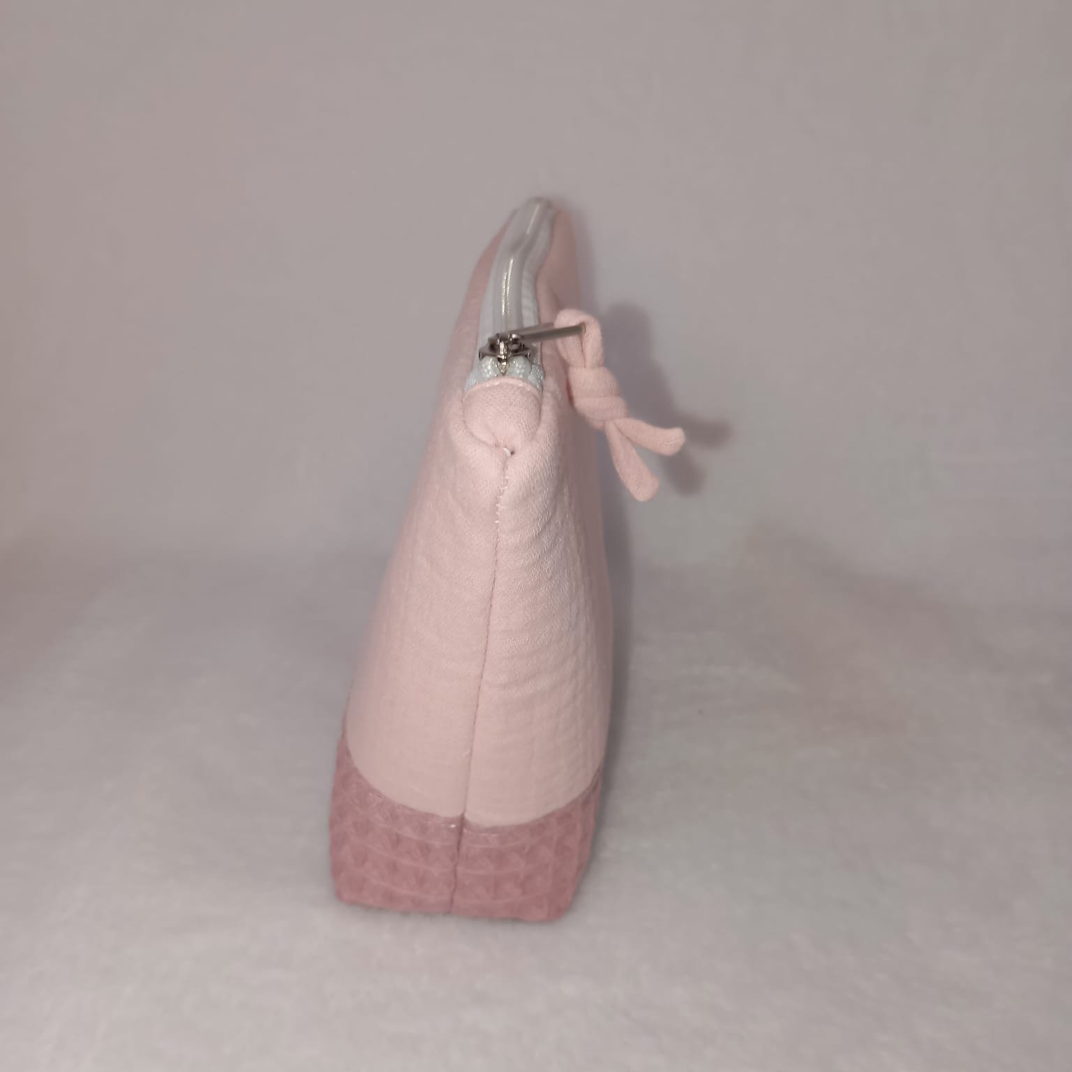 Compacto, delicado y con mucho encanto: el neceser Miramar, modelo Rosa Bebé en su versión pequeña, es ideal para llevar lo imprescindible con estilo. Perfecto para organizar pequeños objetos sin renunciar a la suavidad y elegancia de sus tejidos.