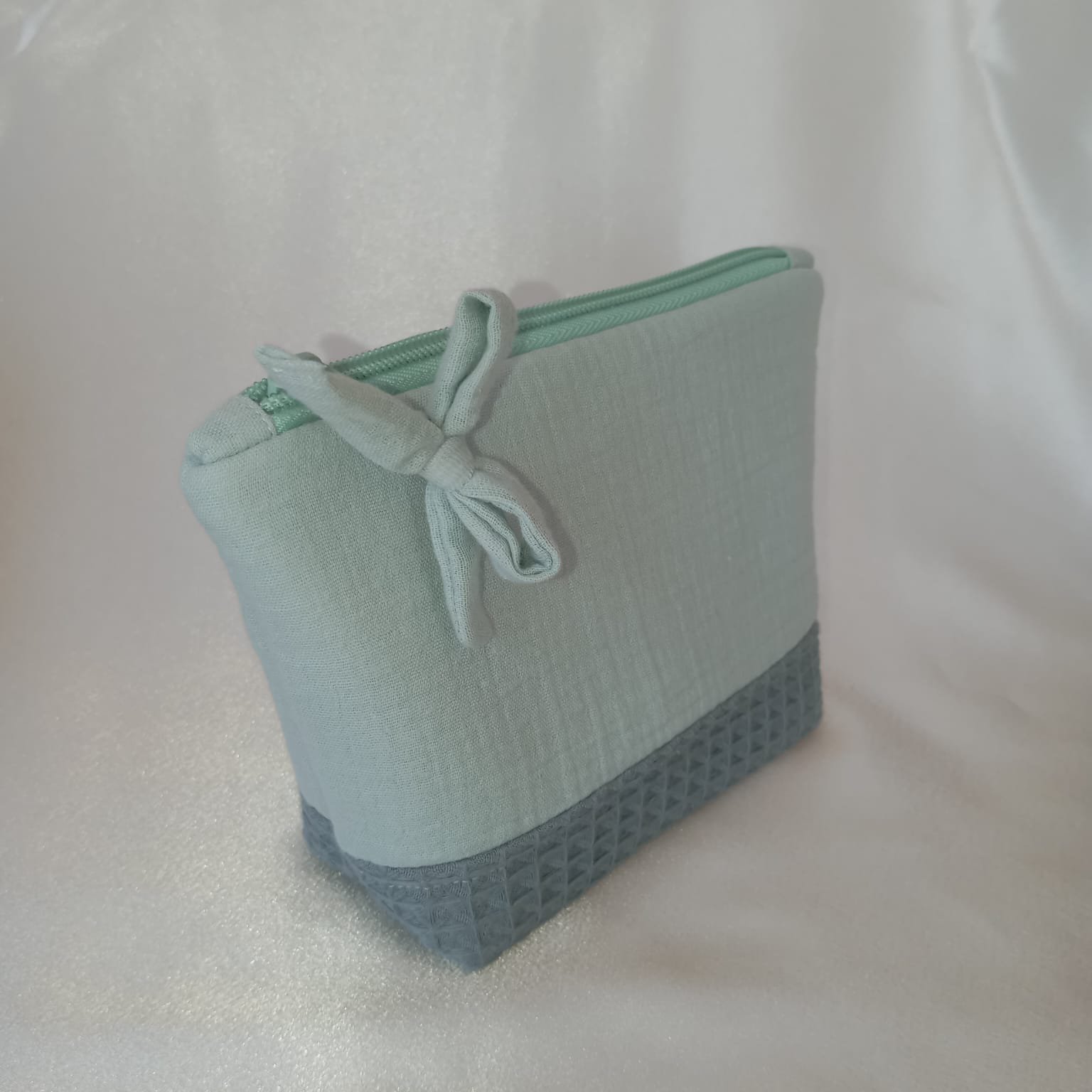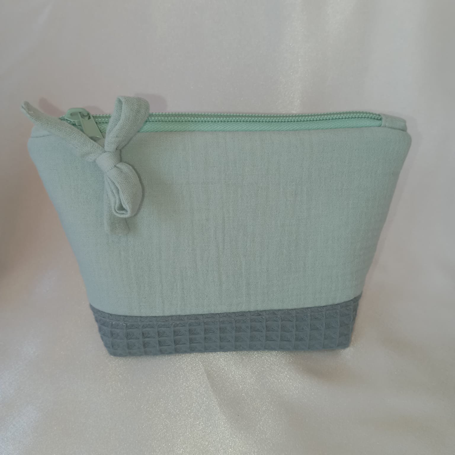 Neceser Pequeño Miramar en tejido muselina verde empolvado y waffle dusty mint (21×13×5 cm)