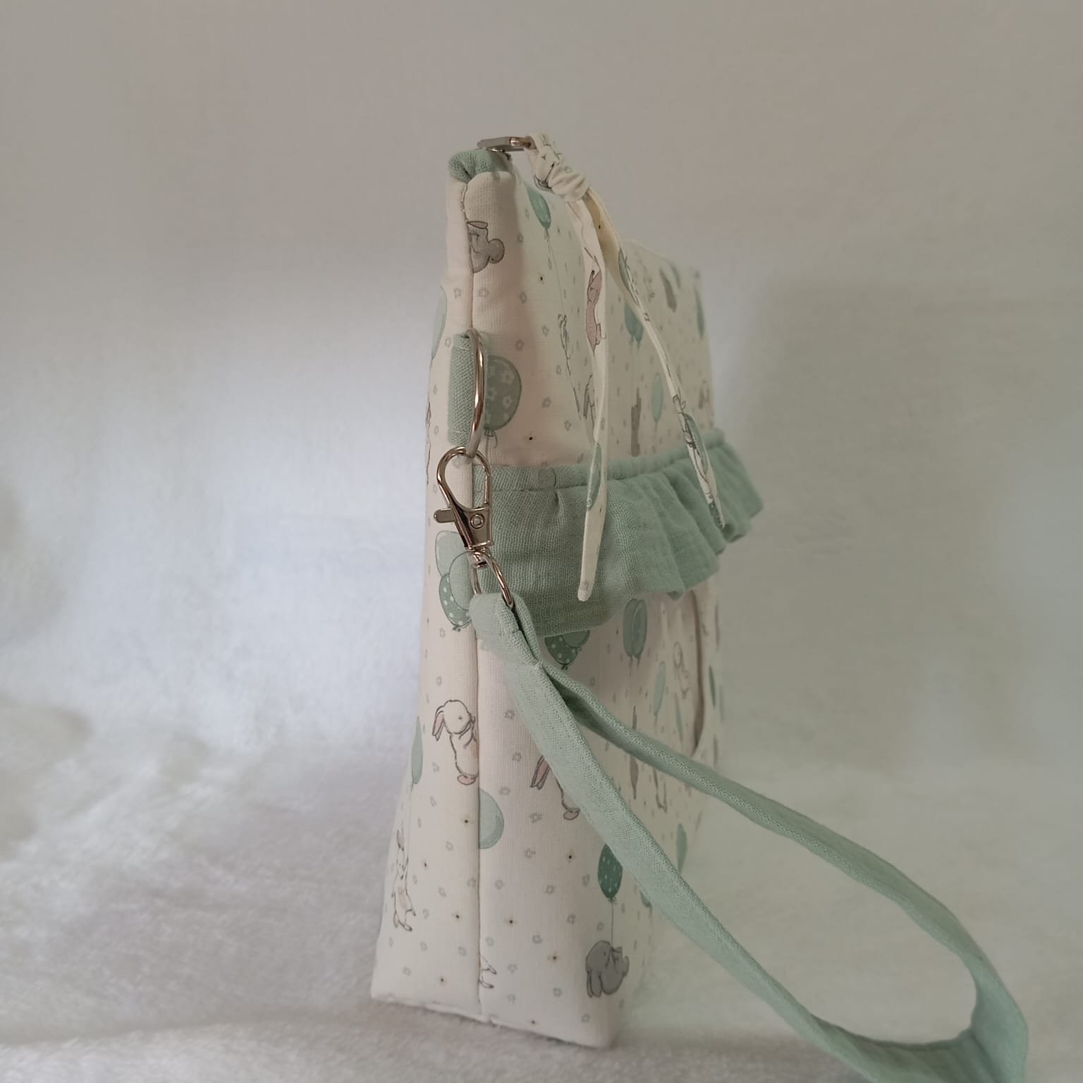 Pañalera con volante y estampado personalizable (23×32×6,5 cm)