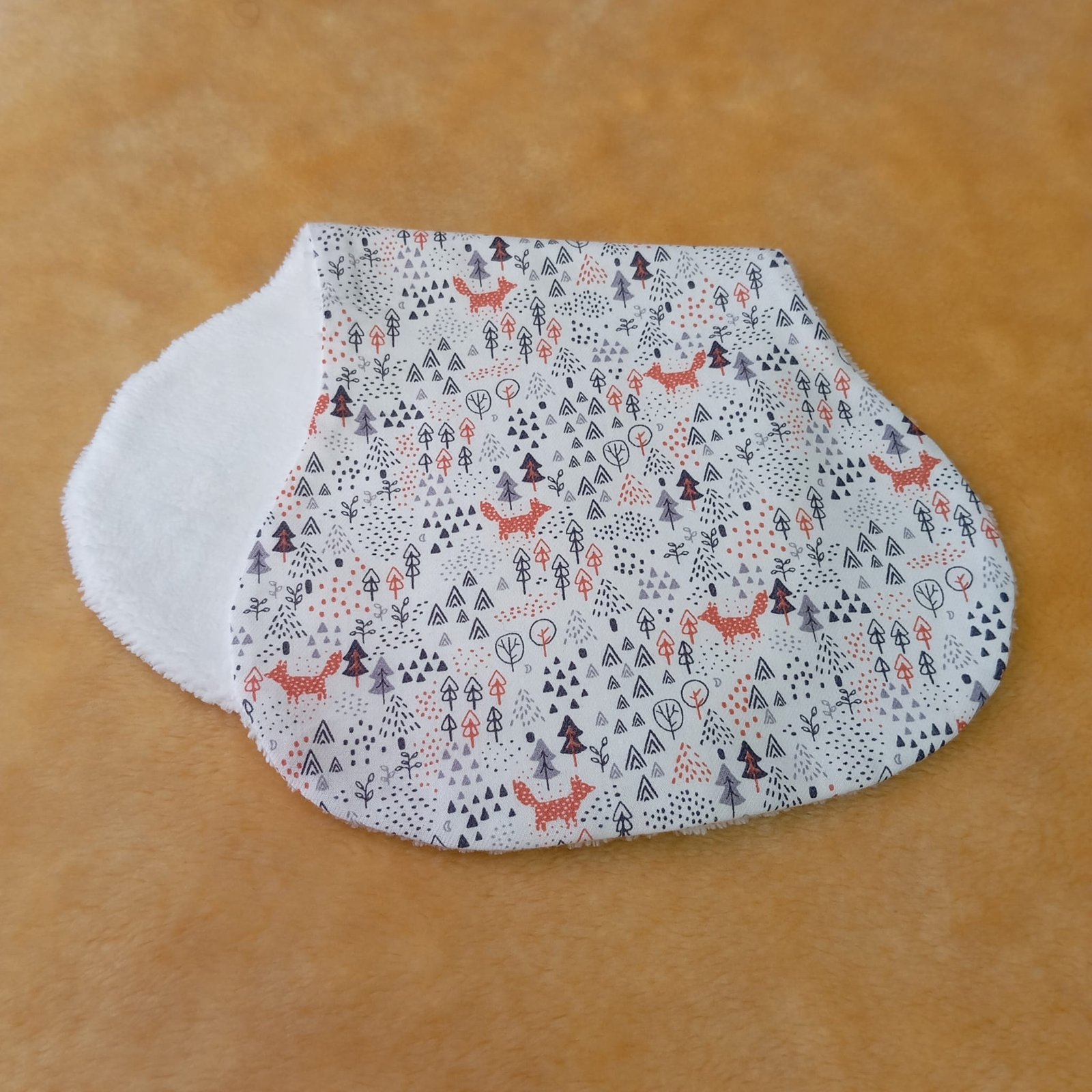 Parte superior: Tejido de viyela 100% algodón con un encantador estampado de zorritos. Muy suave, cálido y agradable al tacto, ideal para el contacto con la piel del bebé.